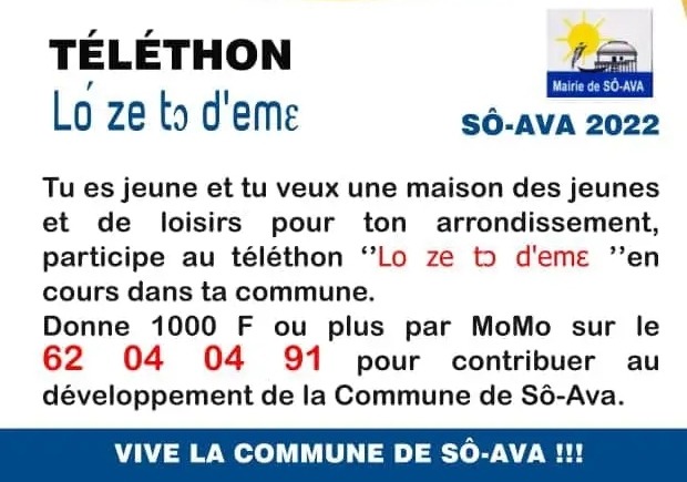 Le téléthon de Sô-Ava constitue un modèle de mobilisation citoyenne réussie. Il montre que la collaboration entre autorités communales et populations locales peut produire des résultats concrets. La réussite de cette opération repose sur une communication de proximité : rencontres de sensibilisation, engagement de jeunes volontaires pour la communication numérique, échanges directs dans les arrondissements.